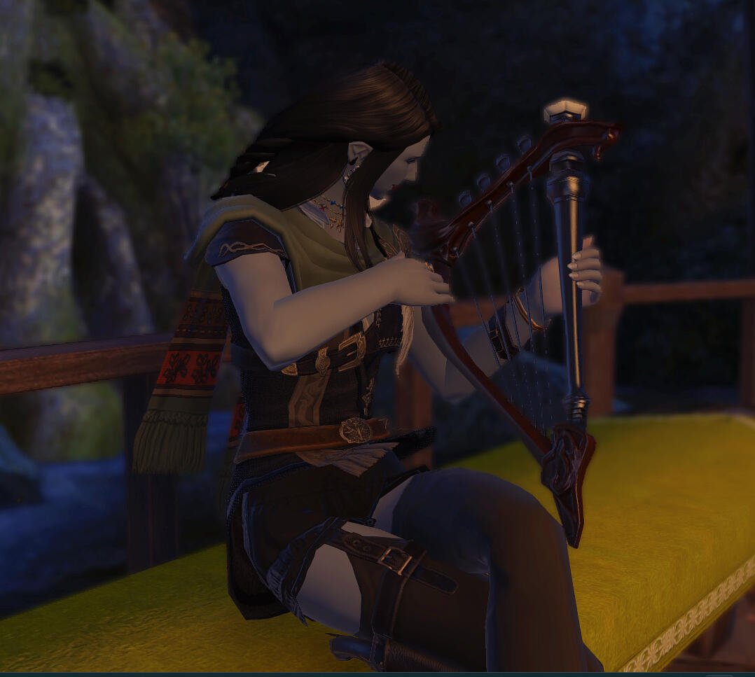 Age: 35Pronouns: She/herOrientation: Demisexual | Pansexual. Engaged to Remiel Vilauclaire.Likes: Coffee, fluffy karakuls, music, books, puns, the sounds of rain and rivers, cozy fireplaces.Dislikes: Boats, large crowds, mushrooms, arrogance.Hobbies: Playing the harp and flute. Making latte art. Daydreaming.She currently resides in Ishgard.